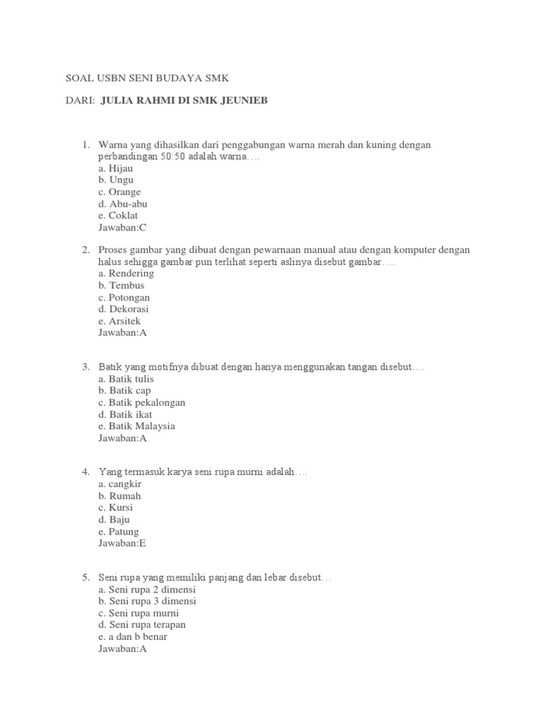 Soal Usbn Seni Budaya Smk 2021 / Download Soal Usbn Seni Budaya Smk 2018 - Maybe you would like to learn more about one of these?. Maybe you would like to learn more about one of these?