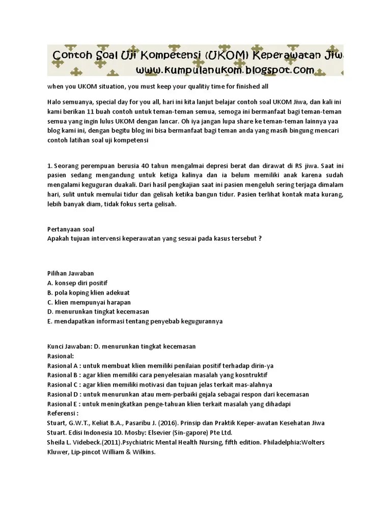 Kbs ukom keperawatan d3 ners indonesia 2018. Contoh soal ukom ners dan kunci jawaban. Contoh latihan soal ujian kompetensi seorang berumur 25 tahun datang ke poliklinik dengan keluhan mata merah dan gatal. Berikut contoh soal & pembahasan uji kompetensi perawat d3 departeman keperawatan medikal. Perawat sedang mempersiapkan untuk memberi .
